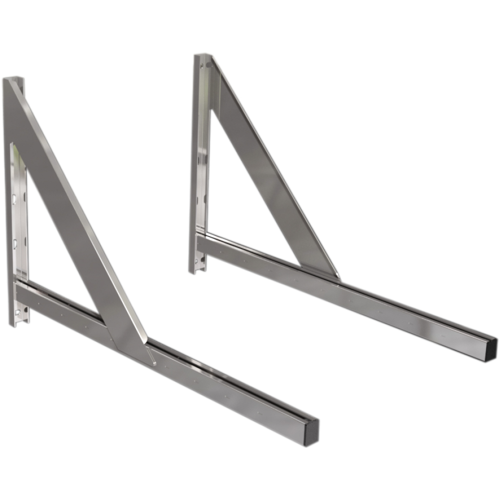 Stěnová konzola pro založení komínového tělesa. Délka 900 mm umožňuje odstup pláště komína od fasády ve vzdálenosti až 685 mm (podle průměru). Systém BASIC, NEREZ lesklý plášť, pro průměry 130-250 mm.