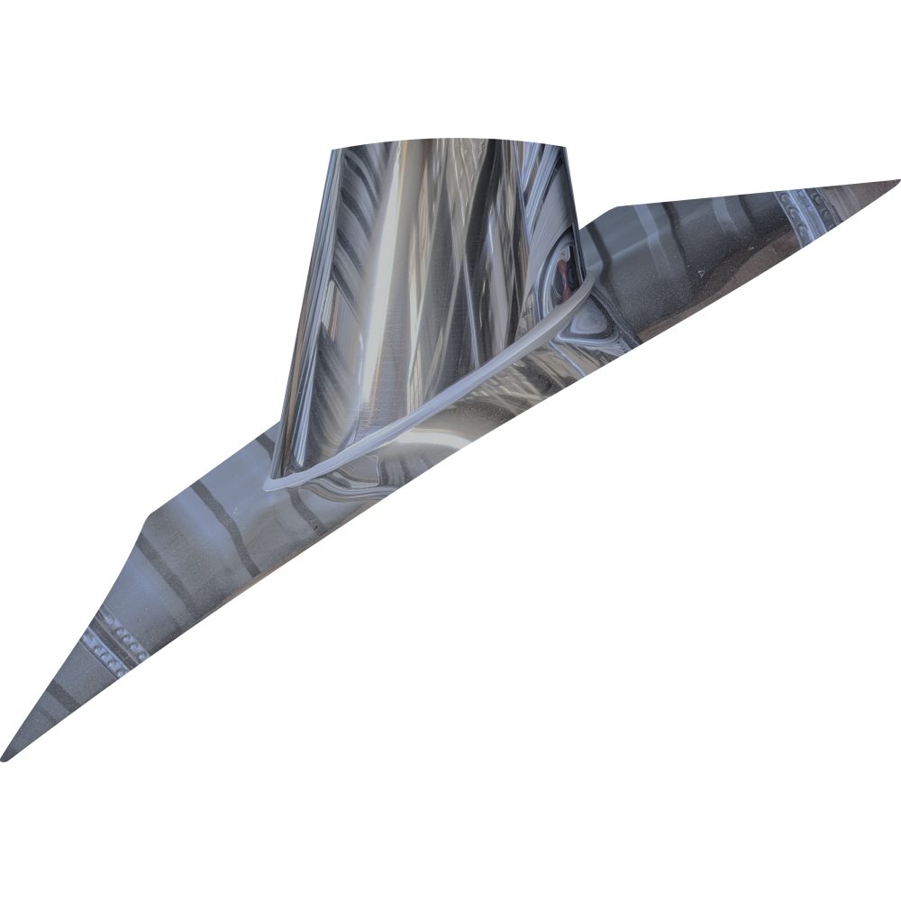 Střešní průchodka 22° (+/-10°) s nerezovou základnou. Systém BASIC, NEREZ lesklý plášť, průměr 180mm, tl. vložky 0,5mm, síla izolace 30mm.