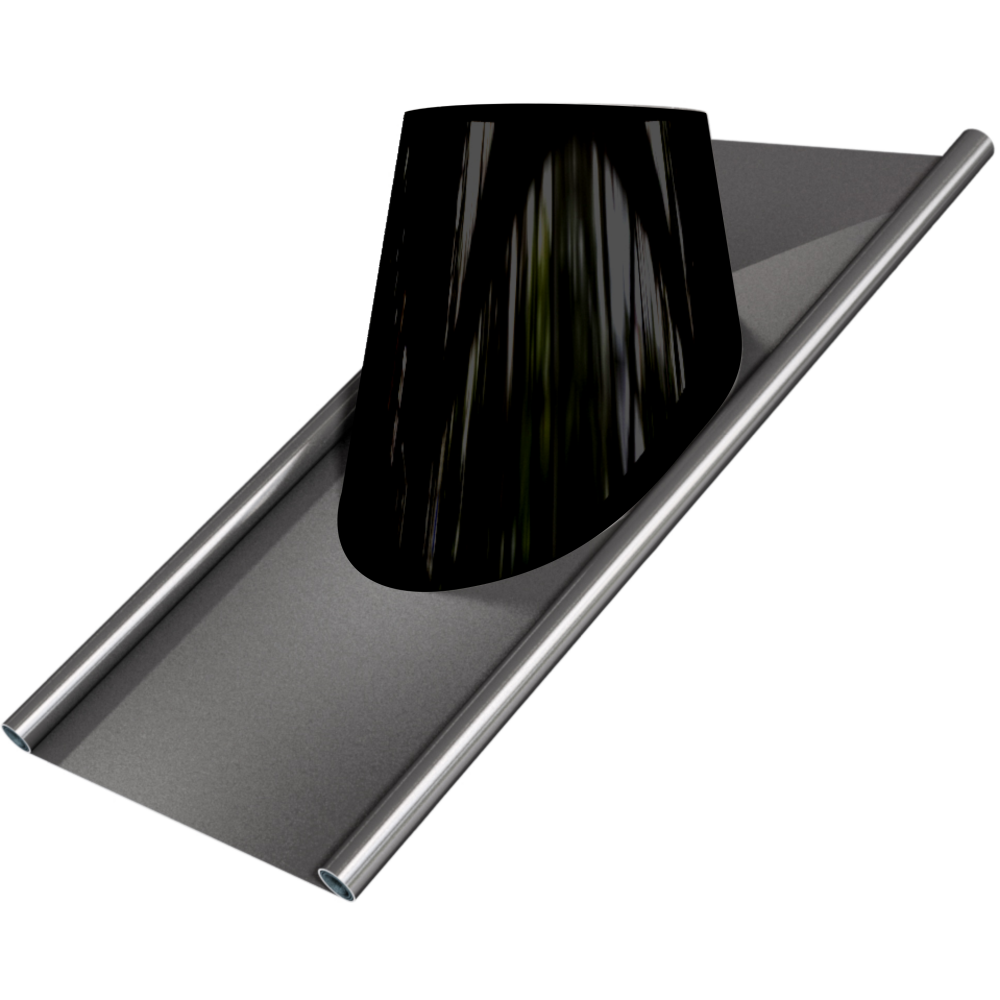 Střešní průchodka 45° (+/-10°) s olověnou základnou. Systém BASIC NEREZ 9005 s černý lakovaným povrchem (RAL 9005), průměr 180mm, tl. vložky 0,5mm, síla izolace 30mm.